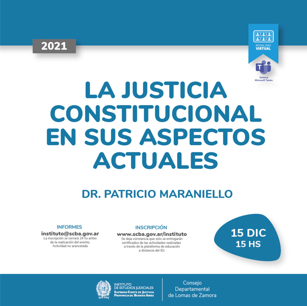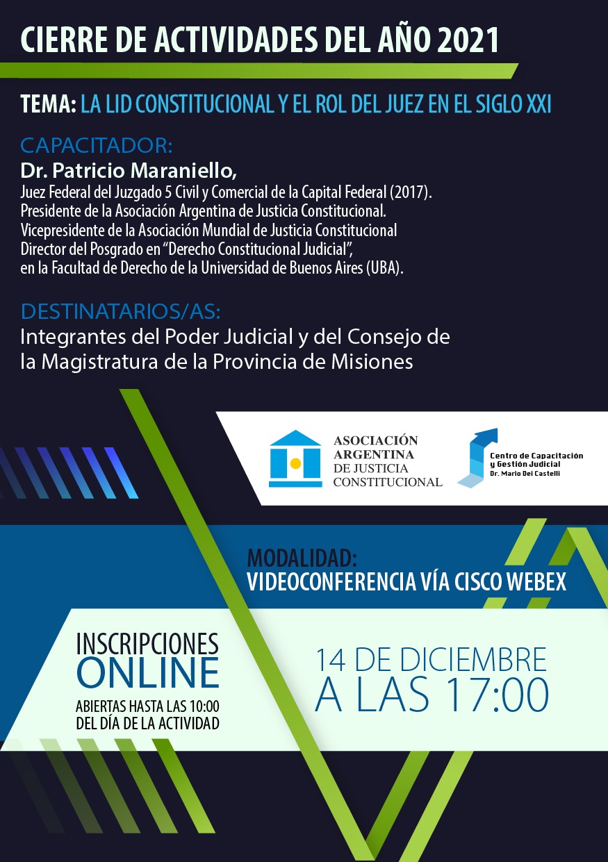 LA LID CONSTITUCIONAL Y EL ROL DEL JUEZ EN EL SIGLO XXI, a realizarse el día 14 de diciembre a las 17:00hs.