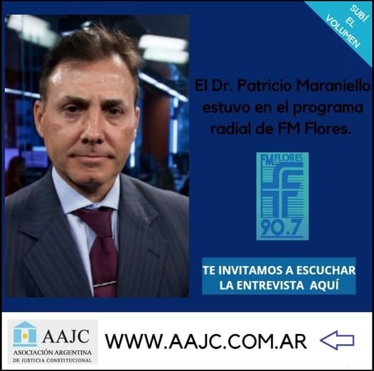 El Dr. Patricio Maraniello, Presidente de la Asociación Argentina de Justicia Constitucional, fue entrevistado en el programa Taxi Libre, que se emite por FM Flores, por la periodista Gilda Gentile.
